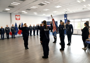 Nowo przyjęci funkcjonariusze wypowiedzieli słowa roty ślubowania - „Ja, obywatel Rzeczypospolitej Polskiej, świadom podejmowanych obowiązków policjanta, ślubuję: służyć wiernie Narodowi, chronić ustanowiony Konstytucją Rzeczypospolitej Polskiej porządek prawny, strzec bezpieczeństwa Państwa i jego obywateli, nawet z narażeniem życia. Wykonując powierzone mi zadania, ślubuję pilnie przestrzegać prawa, dochować wierności konstytucyjnym organom Rzeczypospolitej Polskiej, przestrzegać dyscypliny służbowej oraz wykonywać rozkazy i polecenia przełożonych. Ślubuję strzec tajemnic związanych ze służbą, honoru, godności i dobrego imienia służby oraz przestrzegać zasad etyki zawodowej".