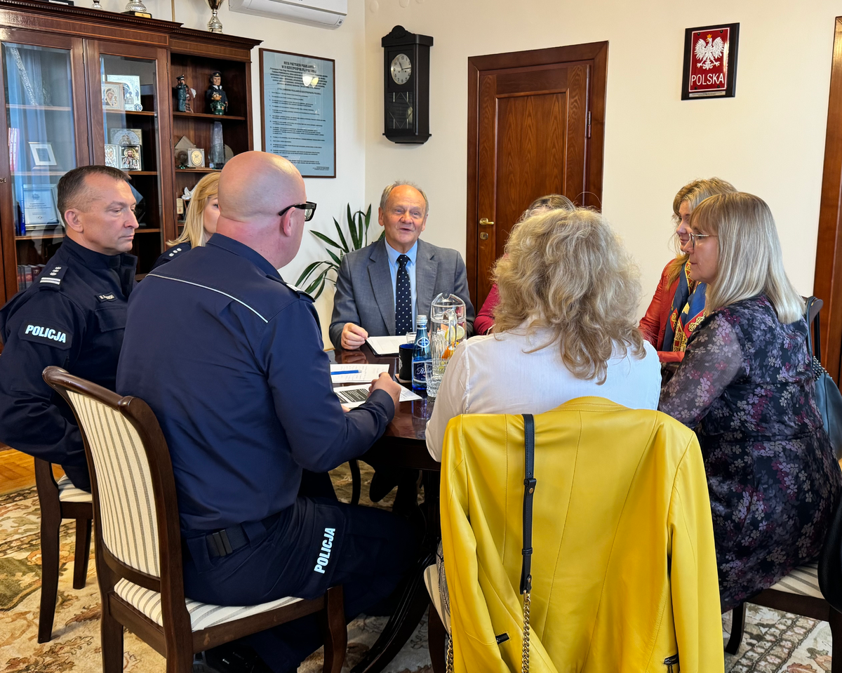 Komendant Wojewódzki Policji w Białymstoku nadinspektor Kamil Borkowski spotkał się z przedstawicielami Okręgowej Izby Lekarskiej w Białymstoku, na czele z Prezesem Okręgowej Rady Lekarskiej w Białymstoku dr n. med. Henrykiem Grzesiak. W spotkaniu z ramienia podlaskiej policji uczestniczył również Zastęcą Komendanta Wojewódzkiego Policji w Białymstoku inspektor Mariusz Kryszkowski oraz z ramienia izby lekarskiej : Wiceprezes Okręgowej Rady Lekarskiej w Białymstoku lek. Tamara Klimiuk, Rzecznik Praw Lekarza Okręgowej Izby Lekarskiej dr hab. n. med. Marzena Wojewódzka – Żelezniakowicz, Przewodnicząca Komisji Legislacyjnej Okręgowej Rady Lekarskiej w Białymstoku lek. Joanna Szeląg, członek Prezydium Okręgowej Rady Lekarskiej w Białymstoku lek. Ryta Filipkowska. Tematem przewodnim było wypracowanie algorytmu współpracy pomiędzy podlaskimi policjantami i lekarzami naszego województwa. Współpraca ta dotyczyć będzie bezpieczeństwa zarówno samych lekarzy jak i personelu medycznego. Począwszy od jak najszybszej drogi informowania policjantów o niebezpiecznych sytuacjach, w których biorą udział lekarze czy pracownicy medyczni podczas swojej pracy, poprzez cykl szkoleń z samoobrony skierowanej do tej grupy odbiorców, po edukację prawną medyków.