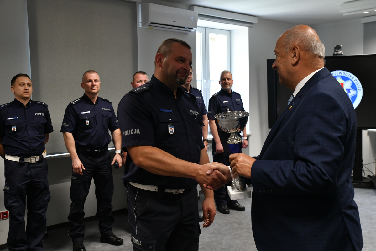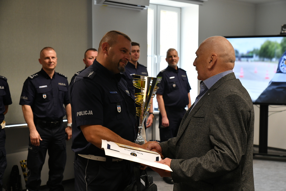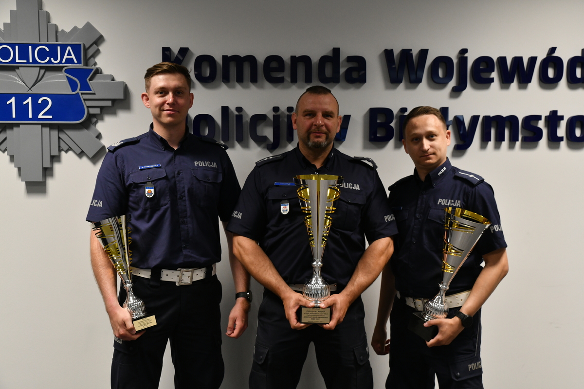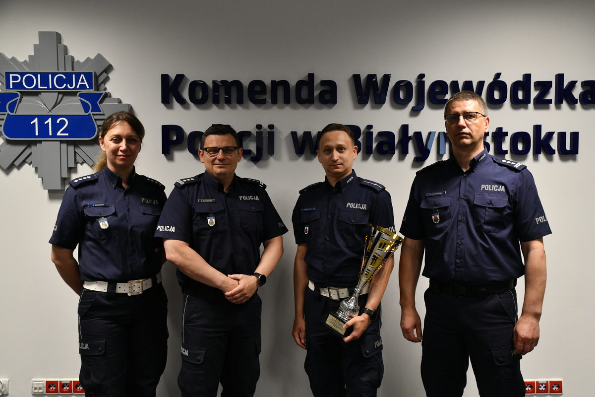 Uroczyste podsumowanie tegorocznego konkursu, odbyło się dziś w Komendzie Wojewódzkiej Policji w Białymstoku. I Zastępca Komendanta Wojewódzkiego Policji w Białymstoku inspektor Krzysztof Woźniewski pogratulował wszystkim zawodnikom, a zwycięzcom I oraz II miejsca życzył również wygranej w finale ogólnokrajowym, który w tym roku odbędzie się we wrześniu w Katowicach.
