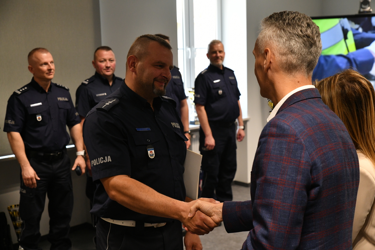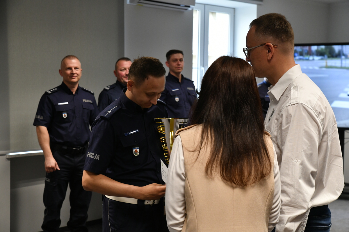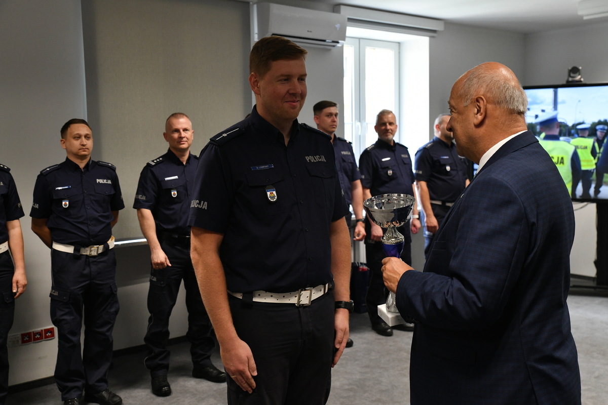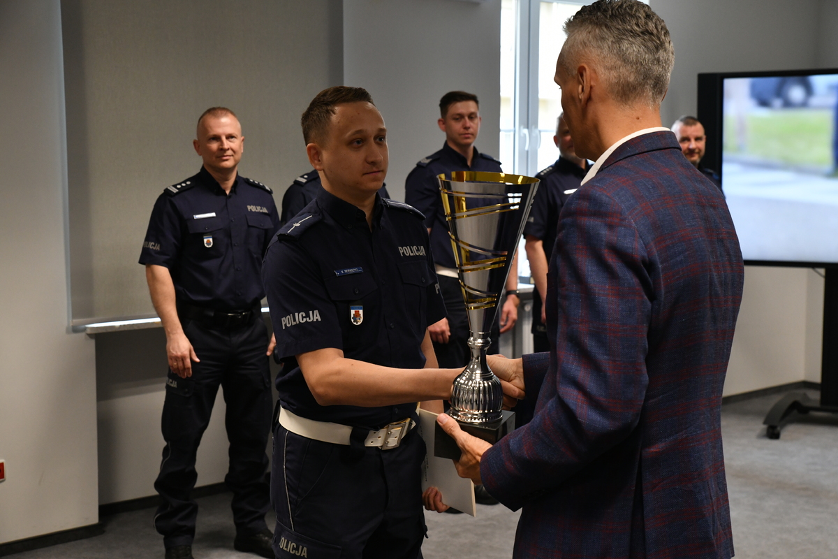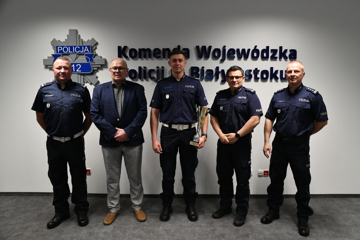 Najlepsi policjanci ruchu drogowego wyłonieni podczas wojewódzkiego finału konkursu „Policjant Ruchu Drogowego” odebrali wyróżnienia z rąk I Zastępcy Komendanta Wojewódzkiego Policji w Białymstoku inspektora Krzysztofa Woźniewskiego. Gratulujemy i życzymy powodzenia w ogólnopolskim finale, który odbędzie się już we wrześniu w Katowicach.