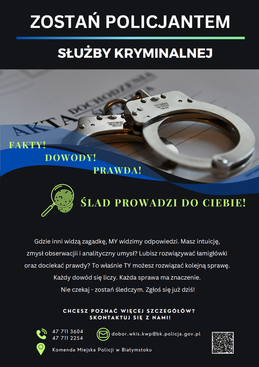 Przyjęcia do podlaskiego garnizonu planowane są we wszystkich miesiącach do końca tego roku, jednak liczba wakatów sukcesywnie topnieje. Po ostatnim przyjęciu 63 funkcjonariuszy, możemy przyjąć jeszcze 175 osób w szeregi naszego garnizonu, który obecnie liczy 3289 etatów mundurowych. Do kandydatów skierowana została także oferta specjalna. Na absolwentów kierunków kryminalistyka, kryminologia i prawo, czekają miejsca w pionie kryminalnym Komendy Miejskiej Policji w Białymstoku. Kandydat, który przygotował wymagane dokumenty, zmoże je złożyć osobiście lub za pośrednictwem środka komunikacji elektronicznej albo przesłać do jednostki organizacyjnej Policji, w której chce pełnić służbę. Można je także wypełnić w jednostce policji z pomocą pracowników kadrowych.