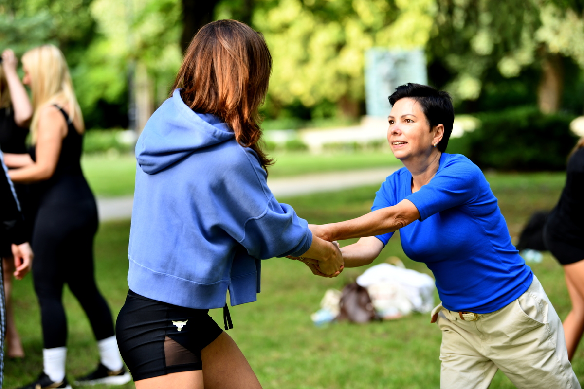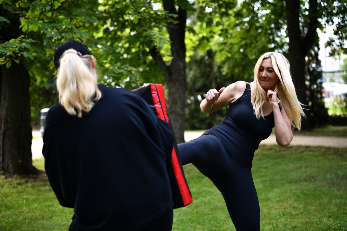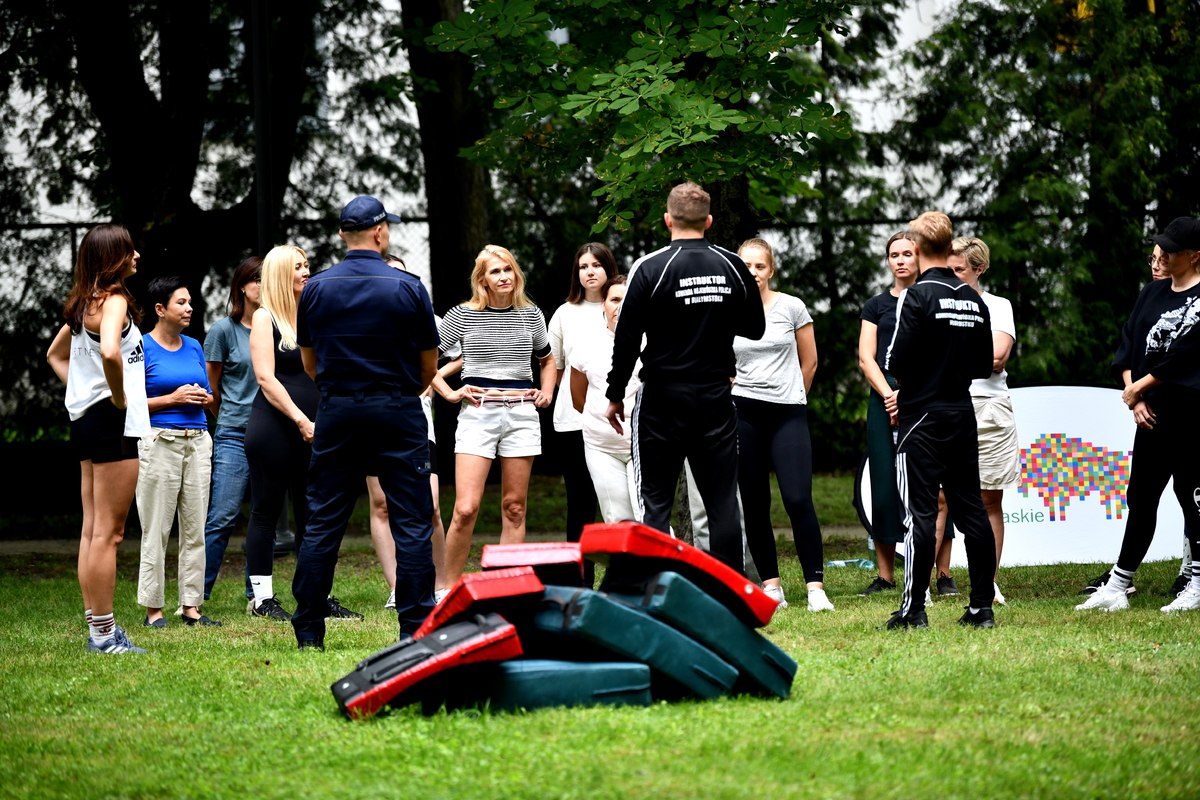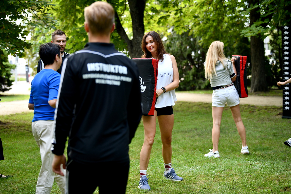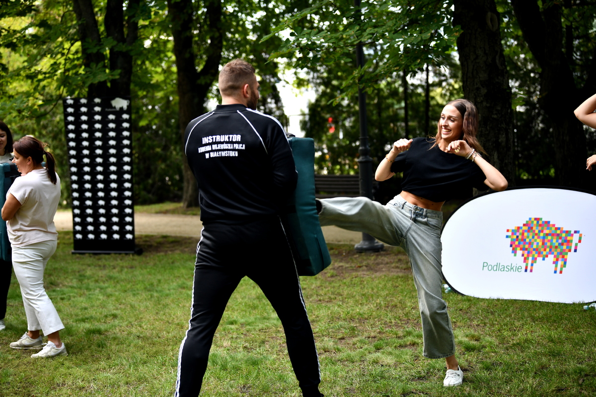 Pod okiem policjantów Wydziału Kadr i Szkolenia Komendy Wojewódzkiej Policji w Białymstoku, kobiety uczyły się, jak skutecznie obronić się przed napastnikiem. Instruktorzy podpowiadali między innymi jak wyrwać się z uchwytu za rękę, jak uwolnić się z obchwytu od tyłu, a także panie poznały różne metody obezwładnienia agresora. Była to świetna okazja do nabycia podstawowych umiejętności obronnych, nabrania pewności siebie i odporności na stres.