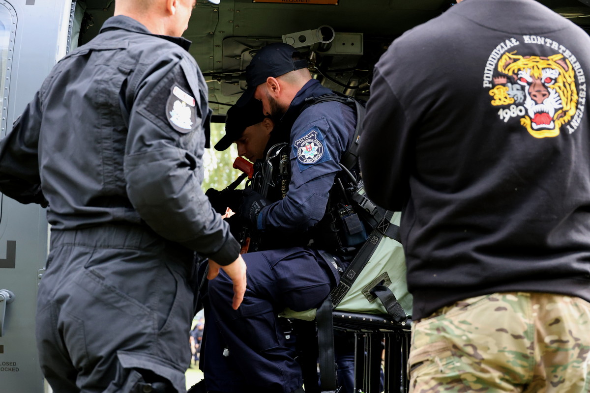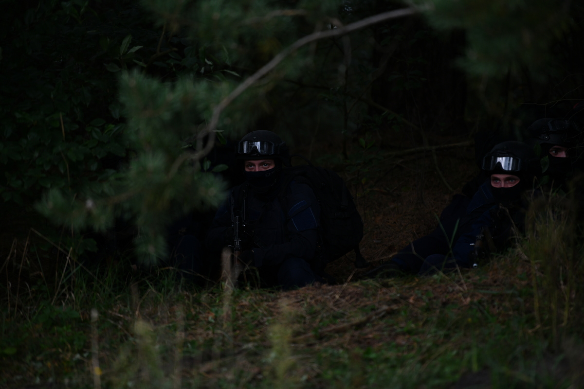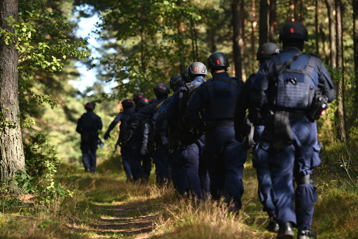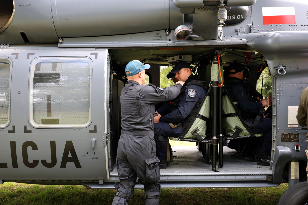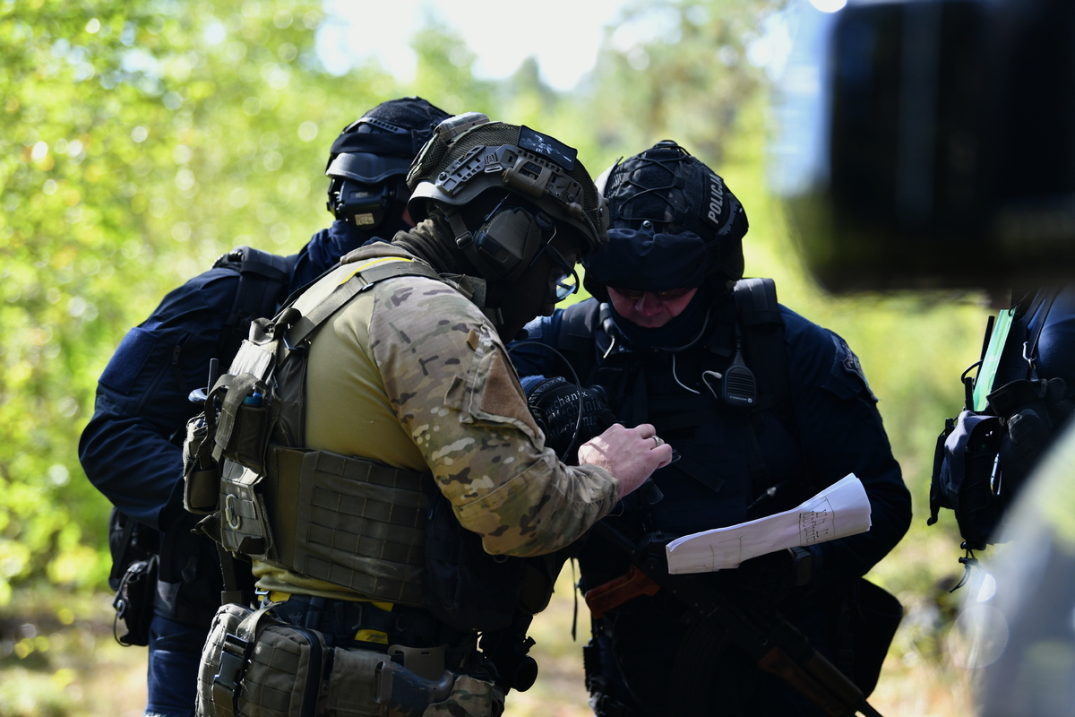 W tracie ćwiczeń "STAL 2025", które odbyły się we wtorek i środę, funkcjonariusze Oddziału Prewencji Policji w Białymstoku oraz Samodzielnego Pododdziału Kontrterrorystycznego Policji w Białymstoku, prowadzili działania poszukiwawcze i pościgowe zarówno z lądu jak i z powietrza. W manewrach brał udział również policyjny helikopter Black Hawk. Scenariusz zakładał, że na terenie naszego województwa doszło do serii zdarzeń kryminalnych. Jednym z nich było zabójstwo rodziny lokalnego biznesmena. Sprawcy uciekli i ostatni raz widziani byli w lesie u ujścia Pisy i Narwi. W trakcie działań pościgowych został utracony kontakt z jednym z patroli, a kilka godzin później doszło do ataku na infrastrukturę krytyczną. Z ustaleń wynikało, że osoby odpowiedzialne za akt dywersji przemieściły się w kierunku granicy państwa. Do akcji wkroczyli policjanci z Oddziału Prewencji Policji w Białymstoku, Samodzielnego Pododdziału Kontrterrorystycznego Policji oraz załoga policyjnego Black Hawka z Zarządu Lotnictwa Policji Głównego Sztabu Policji KGP. W ćwiczeniach wzięło udział ponad 200 funkcjonariuszy, którzy doskonalili umiejętności taktyczne i techniczne związane z prowadzeniem działań pościgowych i poszukiwawczych.