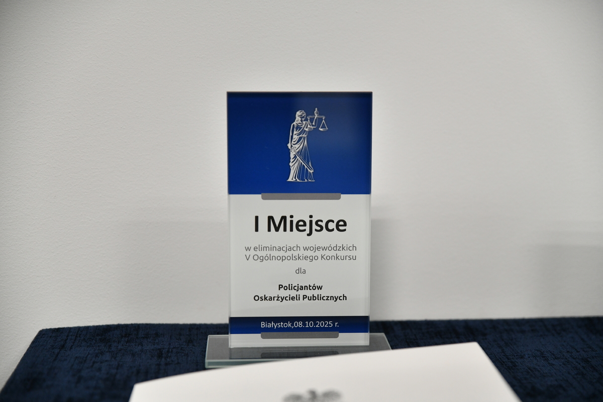 Dwóch najlepszych oskarżycieli publicznych będzie reprezentować Komendę Wojewódzką Policji w Białymstoku w finale V Ogólnopolskiego Konkursu dla Policjantów - Oskarżycieli Publicznych, który odbędzie się w dniach 24-26 listopada 2025 r. w Centrum Szkolenia Policji w Legionowie. Wszystkim uczestnikom konkursu serdecznie gratulujemy!