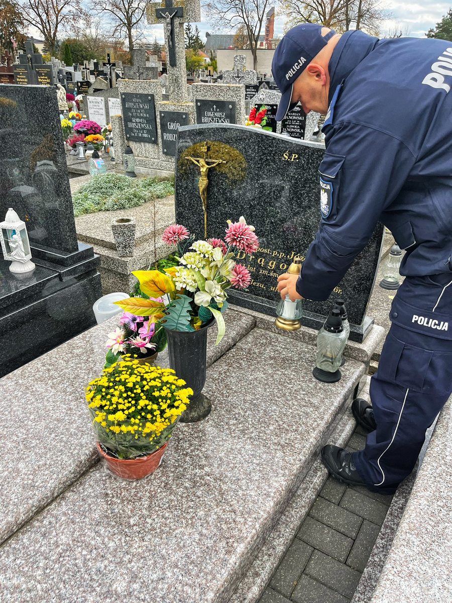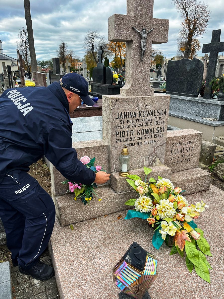 W tym wyjątkowym czasie zadumy, podlascy policjanci oddali hołd swoim Koleżankom i Kolegom, którzy odeszli na wieczną służbę. Na mogiłach funkcjonariuszy w całym regionie zapłonęły znicze. W ten symboliczny sposób mundurowi uczcili pamięć zarówno policjantów, którzy odeszli w ostatnich latach, jak i funkcjonariuszy Policji Państwowej, którzy oddali życie w obronie Ojczyzny. Światło pamięci rozbłysnęło również przy tablicy upamiętniającej funkcjonariuszy Policji Państwowej województwa białostockiego zamordowanych przez NKWD wiosną 1940 roku znajdującej się w holu budynku Komendy Wojewódzkiej Policji oraz na placu – przy tablicy upamiętniającej poległych policjantów. Nie zabrakło również chwili refleksji przy tablicy patrona Komendy Wojewódzkiej Policji w Białymstoku podinspektora Policji Państwowej Romana Prota Sztaby. Znicz pamięci zapłonął również na grobie funkcjonariuszki Policji Państwowej st. post. Janiny Kowalskiej, której grób znajduje się na cmentarzu w Łomży. Ten symboliczny gest jest nie tylko wyrazem pamięci, ale również hołdem dla pierwszych kobiet w Policji w jubileuszowym roku 100. Rocznicy Powołania Policji Kobiecej. Funkcjonariuszka była kierowniczką Izby Zatrzymań dla nieletnich w Łodzi. 21 października 1937 roku przyjechała do Warszawy, by zerwać zaręczyny z narzeczonym. Spotkali się w kawiarni przy ulicy Ciepłej, gdzie rozegrała się tragedia. Mężczyzna oddał w jej kierunku kilka strzałów, które okazały się niestety śmiertelne. Pogrzeb 24-letniej st. post. Janiny Kowalskiej odbył się 26 października 1937 roku w Łomży. W ostatniej drodze towarzyszyła jej delegacja policji kobiecej z Warszawy i Łodzi.