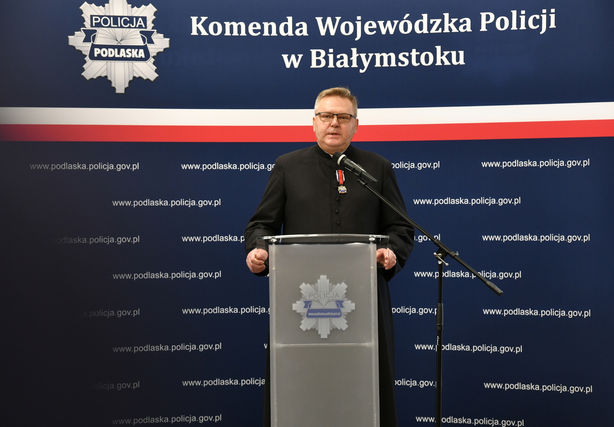 Podczas uroczystości kapelani podlaskiego garnizonu zostali odznaczeni brązowym Medalem za Zasługi dla Policji.