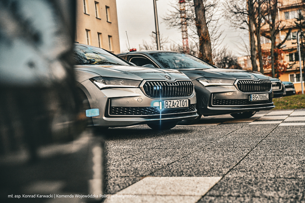 Do podlaskich policjantów trafiły 4 nowoczesne, nieoznakowane radiowozy marki Skoda Superb, które już rozpoczęły patrolowanie dróg naszego województwa. Nowe radiowozy, wyposażone w zaawansowany technologicznie sprzęt do rejestrowania wykroczeń i przestępstw, trafiły do komend w Białymstoku, Suwałkach i Zambrowie oraz do policjantów z podlaskiej grupy SPEED, gdzie będą wykorzystywane do przeciwdziałania agresywnym zachowaniom kierowców oraz poprawy bezpieczeństwa na drogach regionu. Wartość każdego pojazdu to niespełna 370 tysięcy złotych. W tym roku garnizon podlaski został wsparty 156 nowymi radiowozami natomiast ubiegły rok zamknął się na 101 pojazdach. Łączna suma wydana na zakup w ostatnich dwóch latach to blisko 60 milionów złotych.