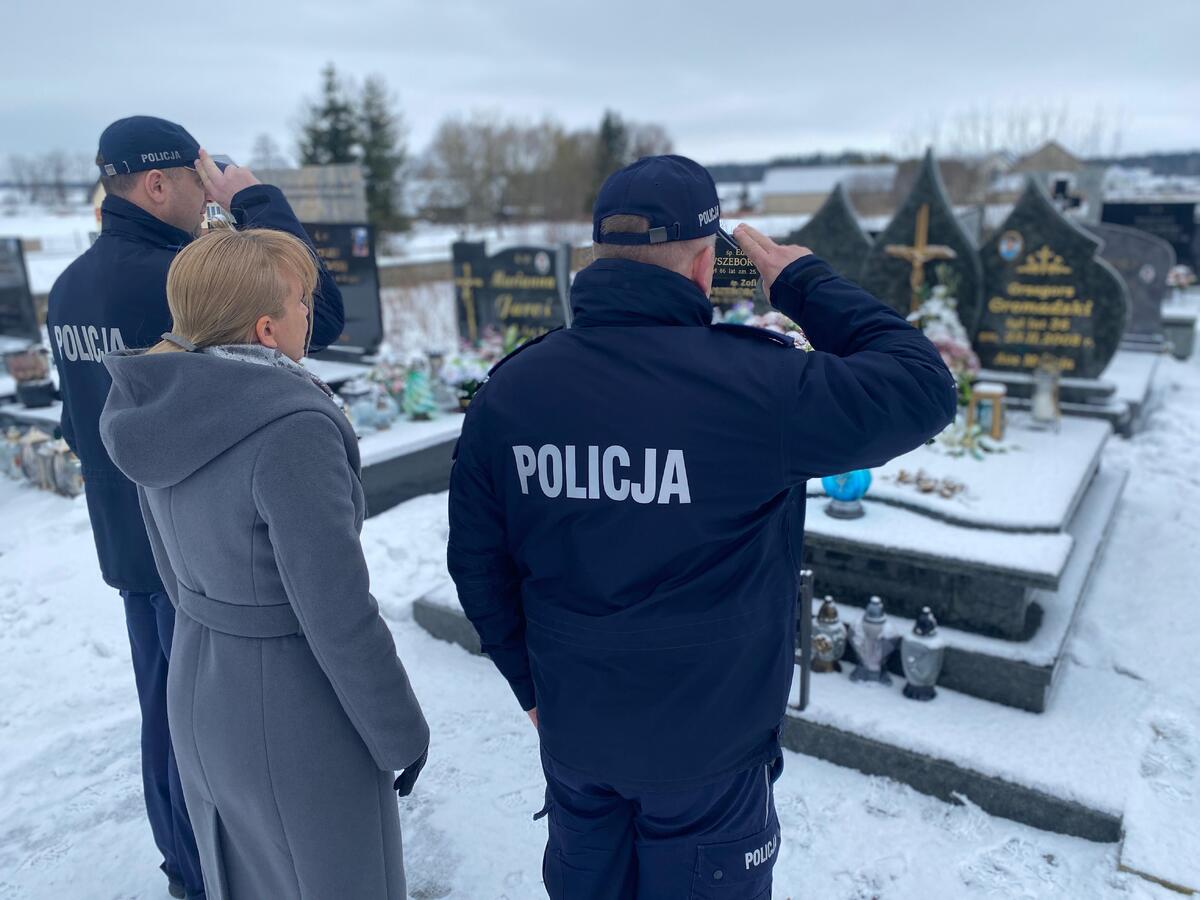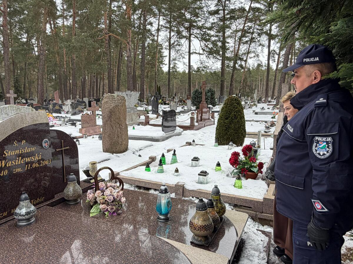 Szczególnie ważnym elementem obchodów było zapalenie na grobach poległych i zmarłych podlaskich policjantów zniczy w kolorze niebieskim - barwie przewodniej kampanii. To symboliczne światło było gestem pamięci, solidarności oraz wdzięczności za ich służbę. Miało również niezwykle ważny wymiar dla rodzin zmarłych funkcjonariuszy, którzy otoczeni są opieką Fundacji Pomocy Wdowom i Sierotom po Poległych Policjantach. Obecność bliskich podczas upamiętnienia ojców, mężów i synów nadała uroczystości wyjątkowy charakter. Był to moment wspólnej refleksji, wspomnień, jak również wyraz solidarności środowiska policyjnego z rodzinami tych, którzy ponieśli najwyższą ofiarę w służbie.
