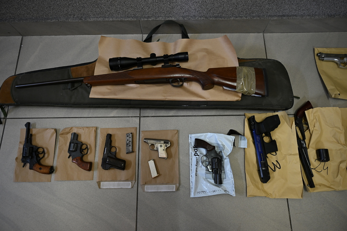Policjanci z Wydziału Kryminalnego i Wydziału Dochodzeniowo-Śledczego Komendy Wojewódzkiej Policji w Białymstoku przy wsparciu kontrterrorystów z białostockiego SPKP, weszli do kilkunastu domów i mieszkań na terenie województwa podlaskiego, gdzie znajdowała się nielegalna broń i amunicja. Funkcjonariuszy w czynnościach tych wsparli także przewodnicy psów służbowych wraz z czworonogami z komend miejskich z Suwałk i Łomży. W wyniku tej realizacji, która odbyła się w ramach międzynarodowych działań "JAD SEE" dotyczących zwalczania przemytu oraz nielegalnego handlu i produkcji broni palnej, kryminalni znaleźli i zabezpieczyli 18 sztuk broni palnej krótkiej - pistolety i rewolwery, pistolet maszynowy, 5 strzelb myśliwskich, 4 sztucery, 4 wiatrówki i kuszę. Poza tym tłumiki, kolby z zamkami, lufy wraz z komorami nabojowymi, 3 puszki prochu strzelniczego, blisko 8000 sztuk amunicji różnego kalibru oraz prawie 125000 złotych i 20000 dolarów. Nielegalna broń była pochowana w rożnego rodzaju skrytkach, między innymi w ścianach budynków. Mundurowym w znalezieniu tego arsenału pomagali czworonożni funkcjonariusze wyspecjalizowani w tropieniu materiałów pirotechnicznych. Część zabezpieczonej amunicji składowana była w wiadrach, puszkach, kartonach, pudełkach i reklamówkach. Policjanci znaleźli także 322 paczki nielegalnych papierosów. Do tej sprawy funkcjonariusze zatrzymali trzech mężczyzn. Usłyszeli zarzuty posiadania broni palnej bez wymaganego zezwolenia, istotnych części tej broni oraz amunicji. Sprawa jest rozwojowa i po uzyskaniu opinii biegłego, zarzuty mogą usłyszeć także inne osoby. Za to przestępstwo kodeks karny przewiduje do 8 lat pozbawienia wolności.