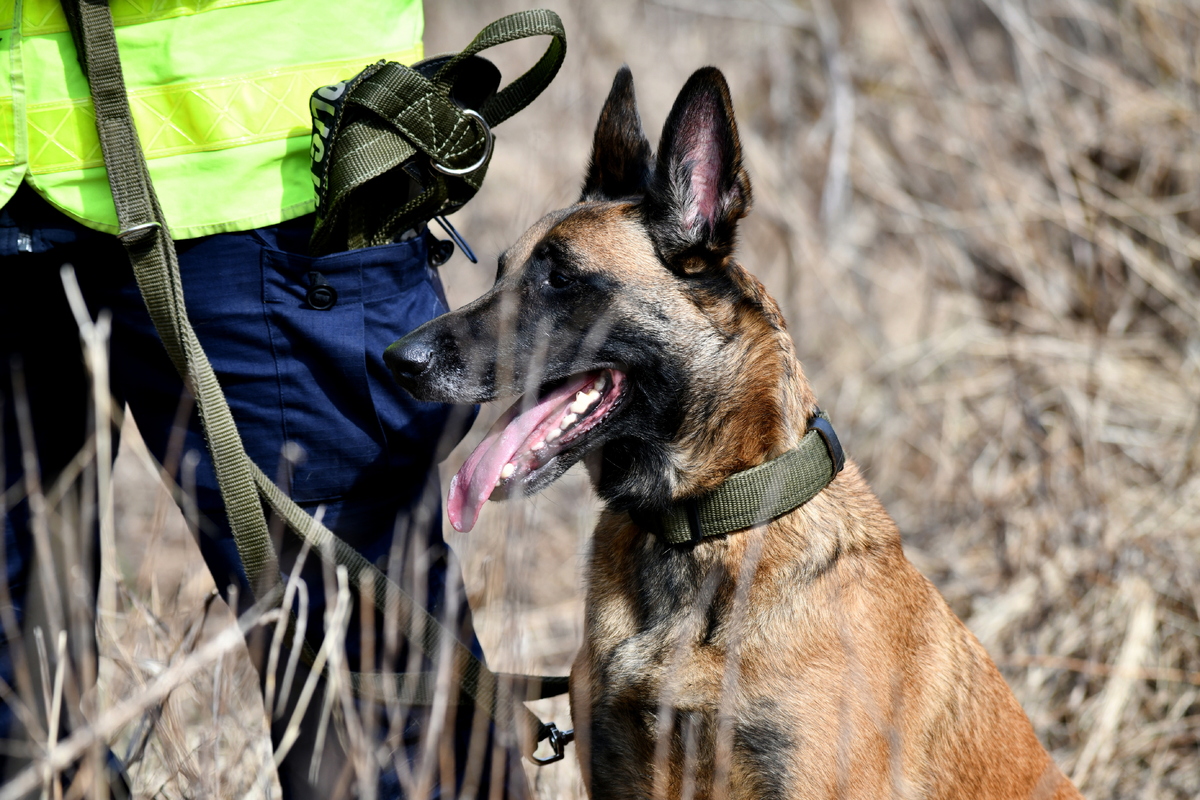 - szkolenia z działań poszukiwawczych z użyciem psów służbowych kategorii patrolowo-tropiącej, tropiącej, tropiącej osoby według założeń mantralingu, do wyszukiwania zapachów zwłok ludzkich oraz z użyciem koni służbowych,