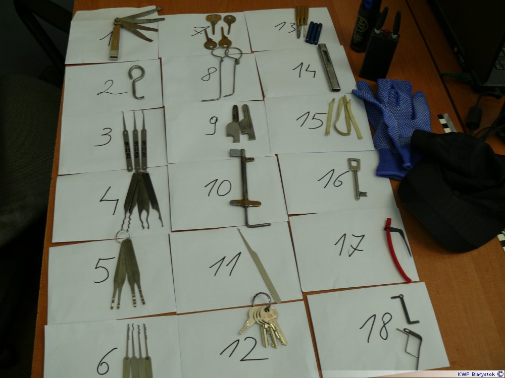 Białostoccy policjanci zatrzymali mieszkańca Lublina, który prawdopodobnie próbował włamać się do jednego z mieszkań w centrum miasta. Mundurowi odnaleźli przy nim zestaw wytrychów. Dzisiaj o dalszych losach 60-latka zadecyduje sąd, grozi mu nawet do 15 lat pozbawienia wolności.