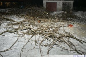 O samowolnej wycince drzew na posesji Zarządu Budynków Mieszkalnych w Suwałkach policjantów powiadomili zaniepokojeni lokatorzy. Przybyli na miejsce funkcjonariusze zastali dwóch mężczyzn noszących drewniane klocki do pomieszczeń gospodarczych. Na podwórku pełno było gałęzi a nieopodal leżały dwie piły motorowe oraz siekiery. Okazało się, że mężczyźni samowolnie ścieli dwie topole. Wartość strat wyceniono na ponad 5 tysięcy złotych. Sprawcy nielegalnego wyrębu drzew trafili do policyjnego aresztu. Teraz za swoje postępowanie odpowiedzą przed sądem, grozi im nawet do 5 lat pozbawienia wolności.