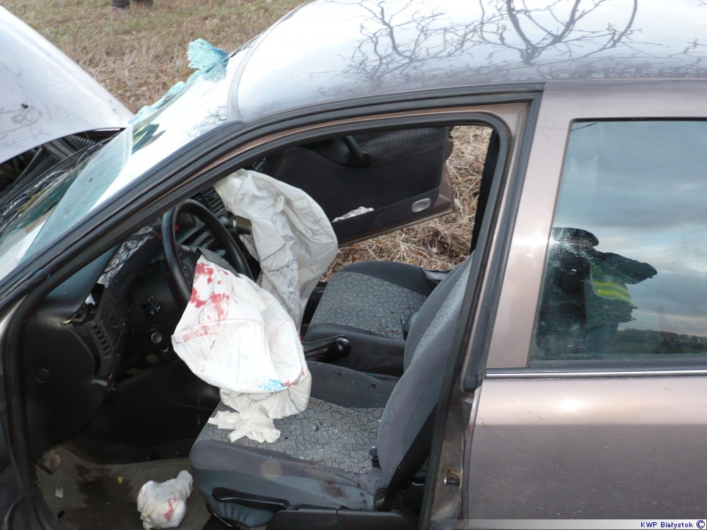 Wczoraj na drodze relacji Zambrów – Nur doszło do groźnego wypadku. Kierowca opla na łuku drogi stracił panowanie nad pojazdem i zjechał do rowu. Auto kilkadziesiąt metrów jechało poboczem, a na koniec zatrzymało się na drzewie. 53-letni mężczyzna jadący vectrą może mówić o ogromnym szczęściu. Potężne uderzenie zamortyzowały poduszki powietrzne. Z obrażeniami głowy trafił do szpitala. Z relacji świadków wynika, że kierujący mógł być pijany. Badanie krwi wykaże, czy rzeczywiście tak było. Rozbita przednia szyba samochodu wskazuje na to, że kierowca mógł jechać bez zapiętych pasów bezpieczeństwa.