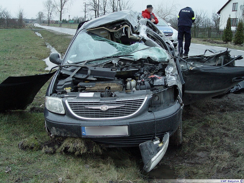 Kierujący ciężarówką stracił panowanie nad pojazdem i uderzył w drzewo, natomiast jego naczepa obróciła się i zderzyła z chryslerem. Kierowca osobówki zginął na miejscu. Pozostałe trzy osoby uczestniczące w zdarzeniu drogowym trafiły do szpital. Zambrowscy policjanci szczegółowo badają okoliczności tragicznego wypadku.