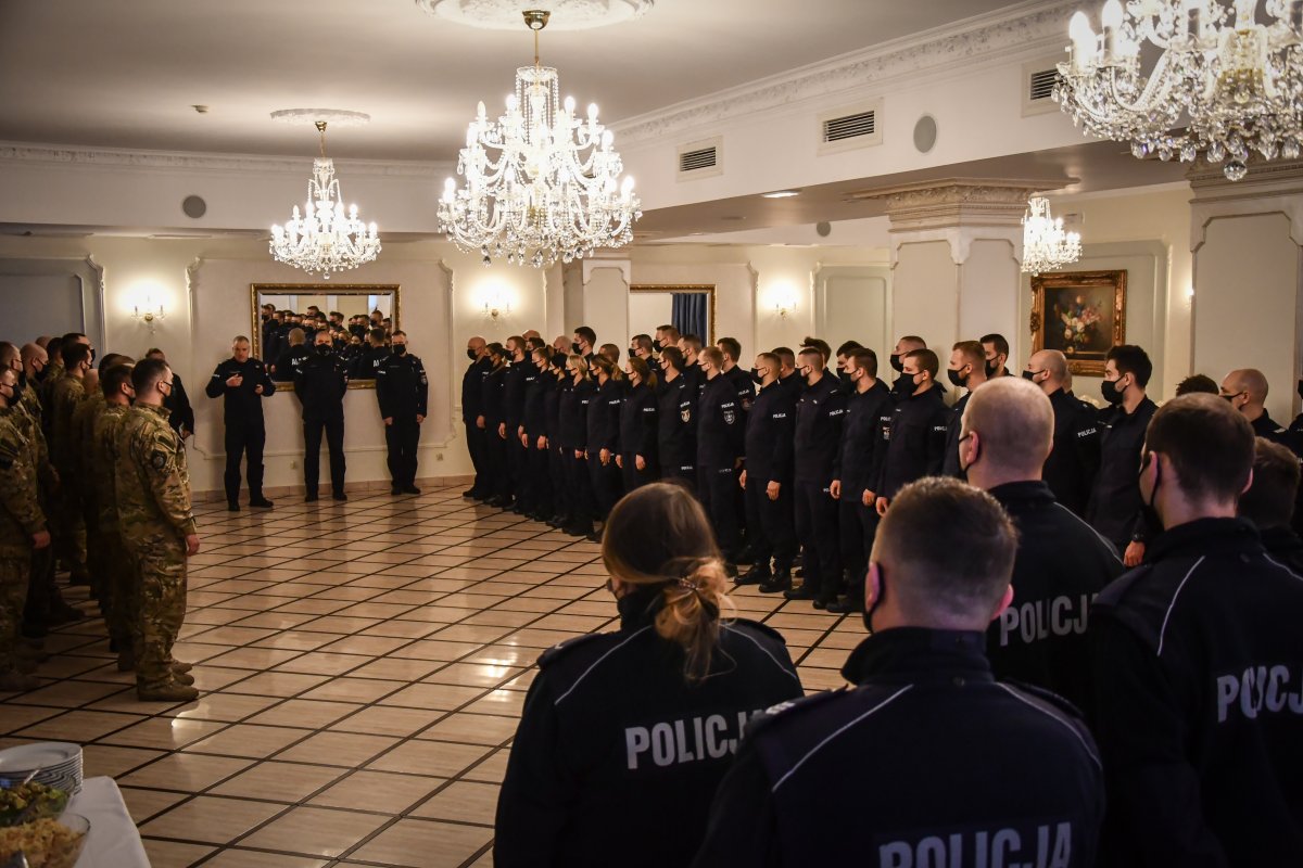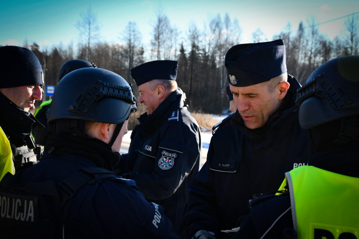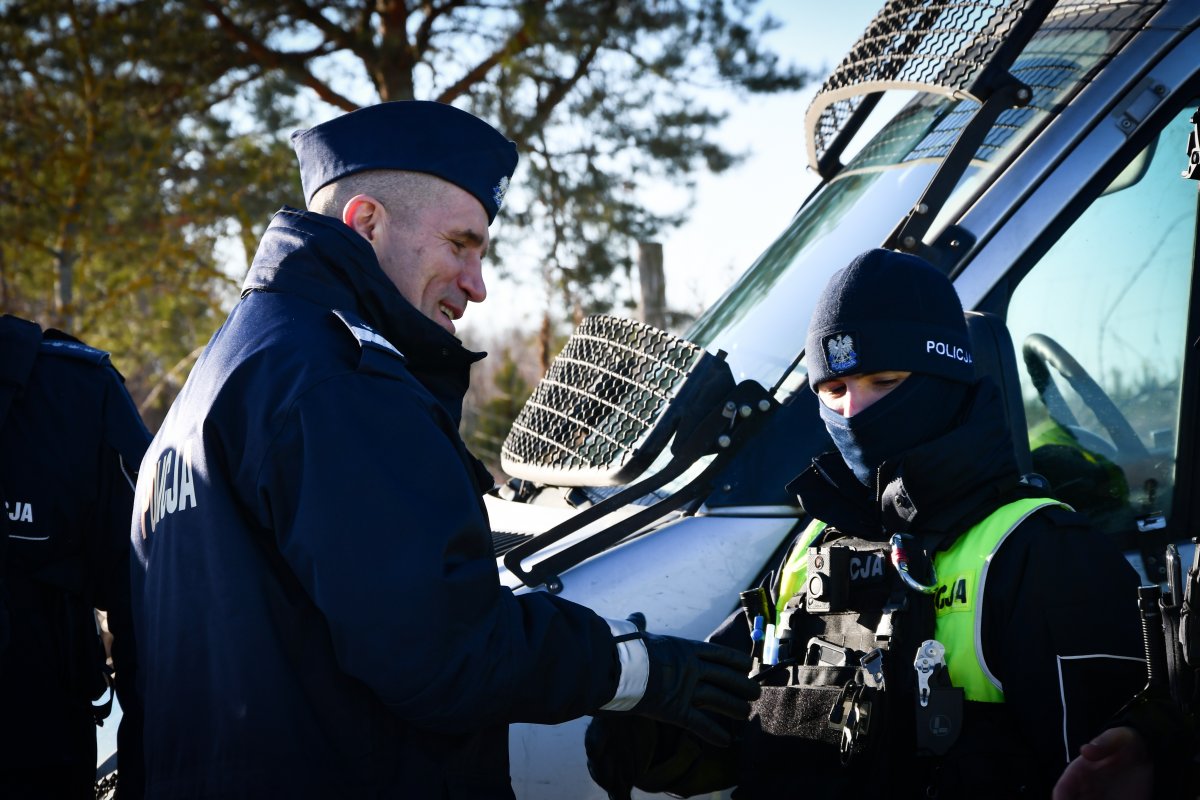 Wielu policjantów z całej Polski spędza święta z dala od najbliższych. Funkcjonariusze czuwają nad naszym bezpieczeństwem pełniąc służbę na Podlasiu. To właśnie w tym regionie mundurowi z całego kraju stoją na straży granicy polsko-białoruskiej. Dzisiaj spotkał się z nimi nadinspektor Roman Kuster Zastępca Komendanta Głównego Policji i I Zastępca Komendanta Wojewódzkiego Policji w Białymstoku inspektor Jacek Kumpiałowski.