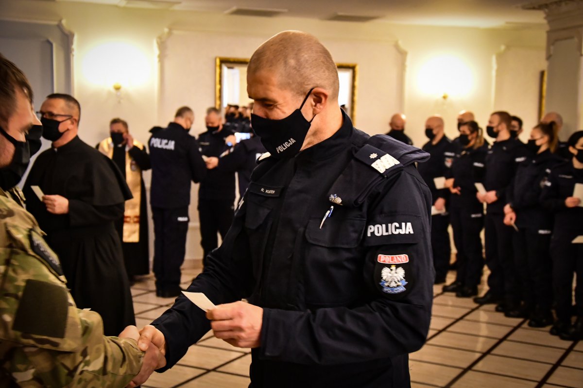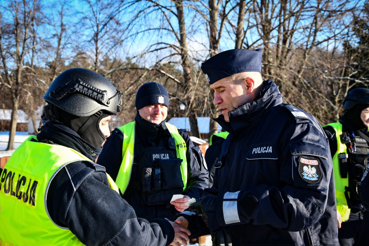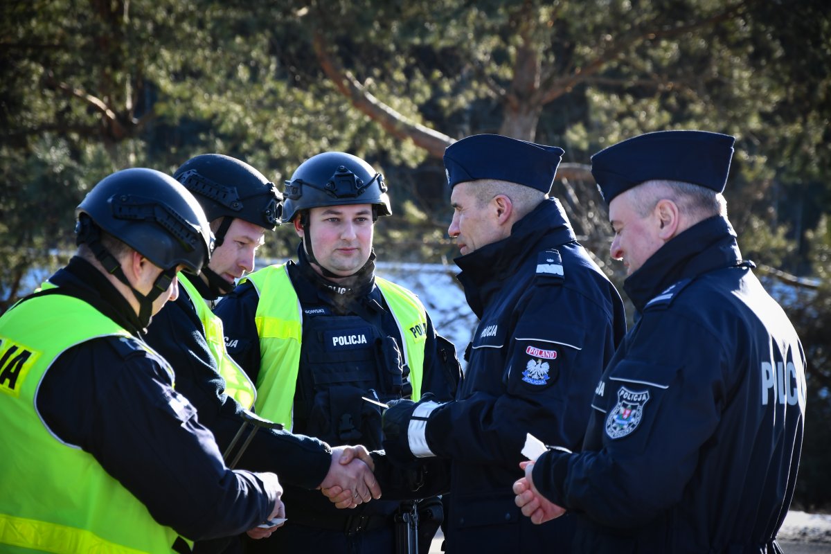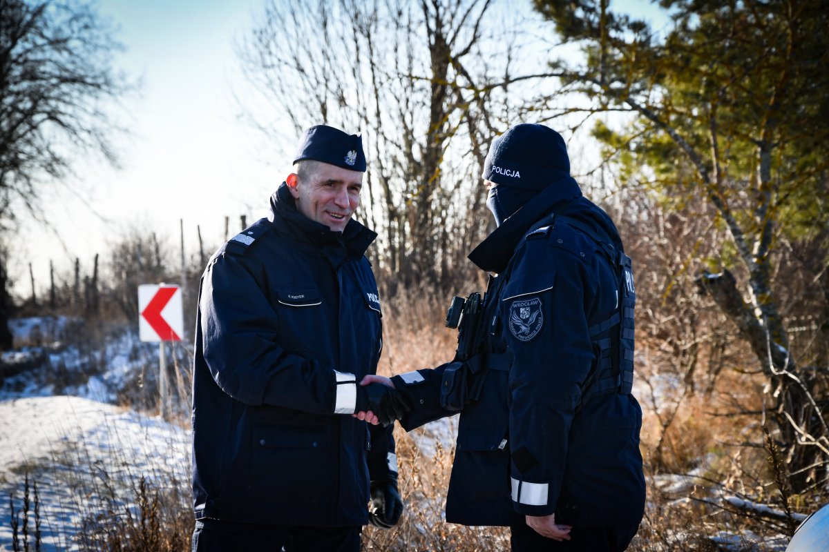 Wielu policjantów z całej Polski spędza święta z dala od najbliższych. Funkcjonariusze czuwają nad naszym bezpieczeństwem pełniąc służbę na Podlasiu. To właśnie w tym regionie mundurowi z całego kraju stoją na straży granicy polsko-białoruskiej. Dzisiaj spotkał się z nimi nadinspektor Roman Kuster Zastępca Komendanta Głównego Policji i I Zastępca Komendanta Wojewódzkiego Policji w Białymstoku inspektor Jacek Kumpiałowski.
