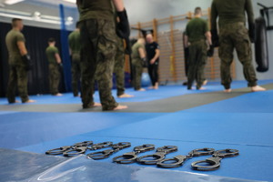 Na terenie Oddziału Prewencji Policji w Białymstoku odbyło się szkolenie, w którym wzięli udział żołnierze Żandarmerii Wojskowej. Pod okiem policyjnych instruktorów ćwiczyli techniki interwencji i doskonalili swoje umiejętności praktyczne oraz wiedzę teoretyczną. Podczas zajęć żołnierze uczyli się, jak skutecznie i zgodnie z przepisami stosować środki przymusu bezpośredniego, między innymi siłę fizyczną i kajdanki. Ćwiczyli obezwładnianie, dźwignie, chwyty transportowe oraz bezpieczne zakładanie kajdanek. Zajęcia pozwoliły uczestnikom udoskonalić swoje umiejętności i utrwalić zasady bezpiecznego działania podczas interwencji.
